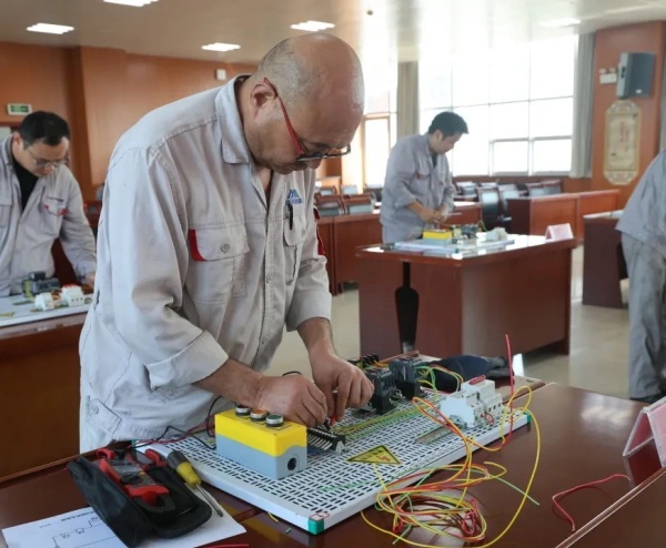 為深入貫徹落實“四賽四抓”勞動和技能競賽實施方案,公司于7月14日至15日在錦陽電廠舉辦2025年通用工種低壓電工崗位技能競賽。本次競賽以“建功‘十五五’·技能鑄輝煌”為主題,來自鋁鎂合金分公司、陽極分公司及錦陽電廠的61名選手同臺競技,通過“理論+實操”雙環節比拼,全面檢驗并提升職工技能水平。 競賽聚焦電動機連續運轉與點動控制兩大工業自動化核心技術,圍繞電氣原理圖識讀、安全規范等理論內容及主回路接線、控制回路調試等實操技能展開。理論考核側重知識儲備與識圖能力,實操環節則要求選手在50分鐘內完成復雜電路搭建與調試,精準實現點動控制的瞬時響應與連續運轉的穩定性控制。裁判組通過萬用表檢測、通電試運行等標準化流程嚴格評分,確保競賽公平公正。 比賽現場,選手們展現扎實的專業功底與應急處置能力,從接觸器線圈自鎖到按鈕開關互鎖,每一處接線均體現精益求精的工匠精神。公司黨委副書記、董事、工會主席楊亞科現場指導,勉勵職工“以賽促學、以賽促練”,將競賽成果轉化為實際生產力。此次競賽不僅搭建了技藝交流平臺,更推動了公司“技能競賽-崗位練兵-技術創新”三位一體培養體系建設,為培養高素質產業工人隊伍、推動企業高質量發展注入新動能。 |
